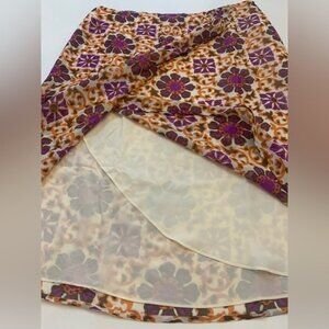 ESCADA 100% silk mock wrapped skirt, purple orange floral size 38 (US 8) (bin G)