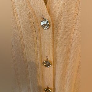 ESCADA 36 Vintage Yellow Gold Gray Cashmere Wool Knit Glamour Sweater Cardigan