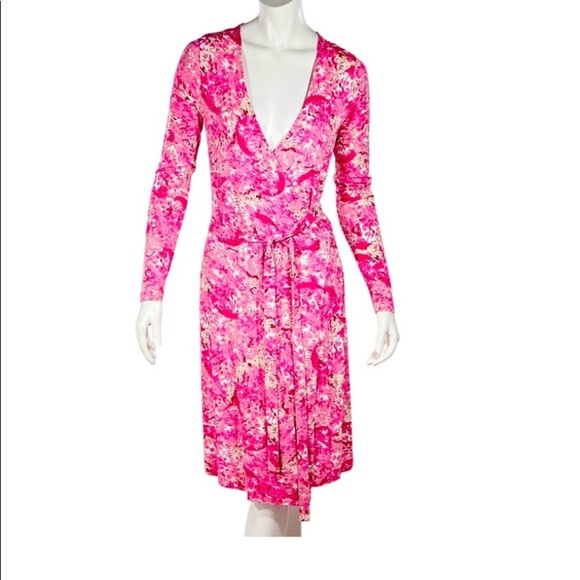 Beautiful wrap dress, perfect for an all figures. True wrap dress so it can fit a size smaller or larger. In great condition. Feel free tore to ask questions.