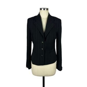 ESCADA Black Classic Pinstriped Career Blazer Jacket 38 Wool Button Front FLAW