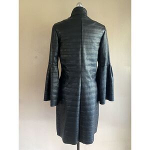 ESCADA Black Coat Size 6, Coated Wool Shiny Trumpet Sleeve Fall Winter Jacket 36