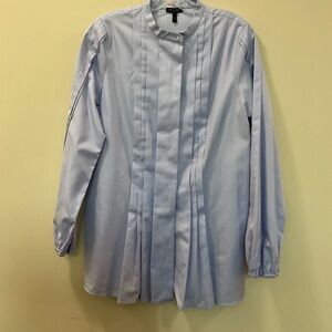 ESCADA Blue Pleated Band Collar Button Front Long Sleeve Blouse Size 40 US 10