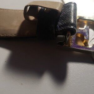 ESCADA Blue Reptile Embossed Leather Belt with Double "E" Silver-Tone Logo Buckl