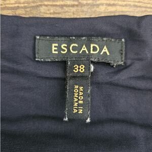 ESCADA Dark Blue Scrunch Side Mini Stetch Skirt sz 38 Minimalist Basic Casual. US Size Medium (8-10) measurements are approximately: waist flat 15 inches. top to bottom 21 inches.