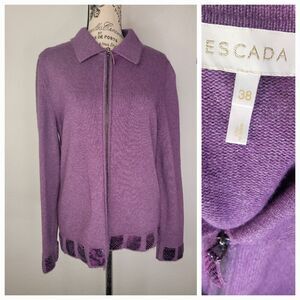 ESCADA Full-Zip Collar Cardigan Womens SZ 38 Plum Knit Wool Cashmere Italy Made
