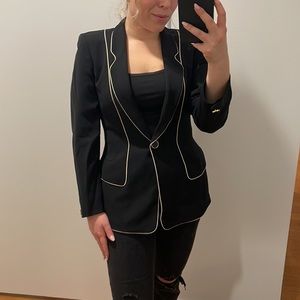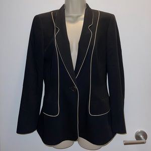 ESCADA Margaretha Ley Black Single Button Wool Blazer with White Trim