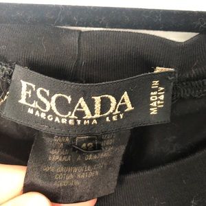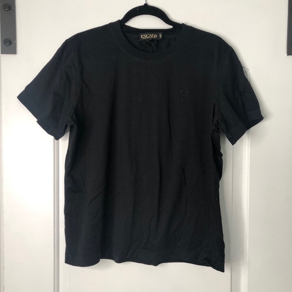 ESCADA Margaretha Ley black tee, made in Italy. Shirt is a size 42/XL and has the embroidered heart logo with an “E” above it. Shirt is in very good condition, no flaws.
