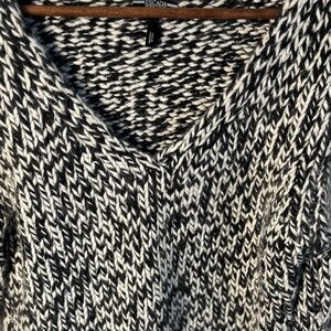 ESCADA SPORT Chunky Knit sweater LARGE Wool Angora Black & white V-neck, This is wool with some angora so it's a fuzzy sweater, soft and heavy across chest 18” armpit to armpit