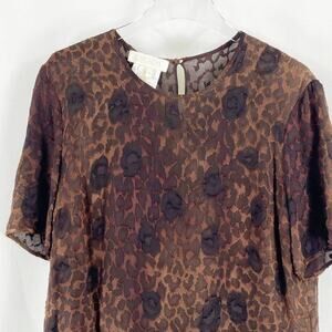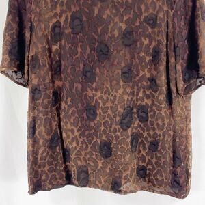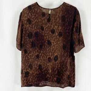 ESCADA Silk Blend Brown Leopard Animal Print Short Sleeve Blouse