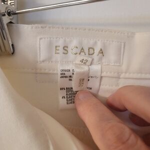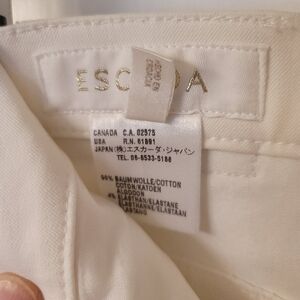 🤍ESCADA Dress Jeans🤍Snow White🤍Straight Leg🤍Ankle Length🤍Very Flattering Fit🤍sz 42 (US 10-12)🤍Elegant Gold ESCADA Logo Trim🤍Structured Cotton/Elastane Blend🤍Freshly Dry Cleaned and Ready for Her Next Love🤍17" Across the Waist🤍21" Across the Hips🤍28" Inseam🤍(approx)🤍Like Near-New, Almost Flawless🤍Overall no blemishes, snags, or stains🤍Gorgeous!🤍$185🤍
