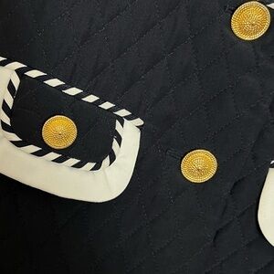 ESCADA VTG 80s Quilted Silk Flap Pockets Gold Button Front Collarless Jacket M