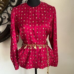 ESCADA Women’s Gold Tone Adjustable Chain Link Charm Belt Hearts, Lock, Key, Made in Spain VINTAGE!!!! ***Maggy London Vintage 100% silk blouse is no longer available***