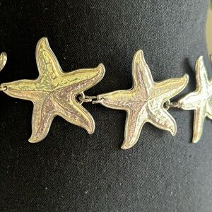 ESCADA Women’s Silver Tone Vintage Distressed Starfish Chainlink Belt