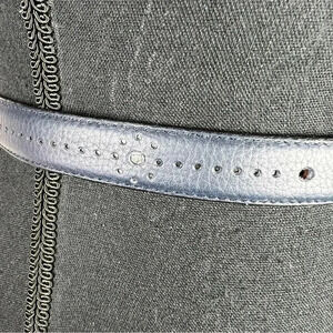 Gorgeous ESCADA leather belt in navy blue made in Italy with silver-tone buckle and 2 silver-tone loops made in Spain in WONDERFUL pre-loved condition! Slight scratches on buckle and signs of wear on silver-tone loops-pls see photos with black circles NOT visible while wearing belt. Size: 34/US Size: 2 **Styled on a size 4 mannequin**