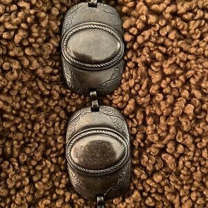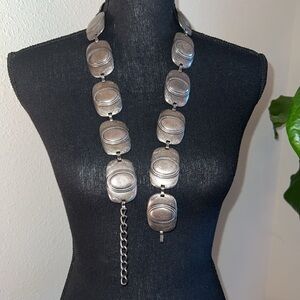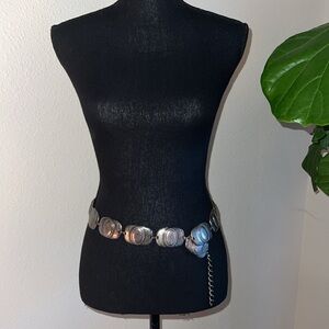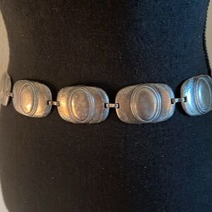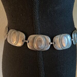 ESCADA Women’s Vintage Tooled Metal Concho Belt Antique Gun Metal Silver Black