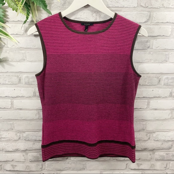 ESCADA pink and dark brown striped tank. Luxurious wool, silk, and cashmere blend.