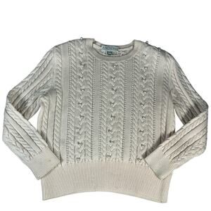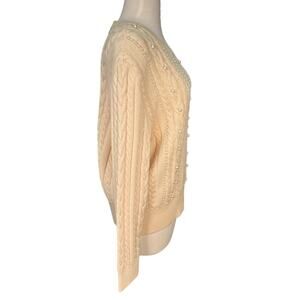 ESCADA by MARGARETHA LEY 100% New Wool Size 42 Cream Tight Knit With Pearls