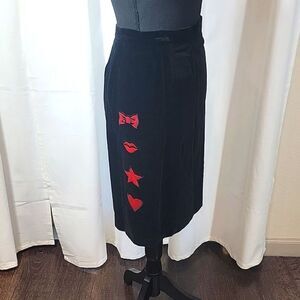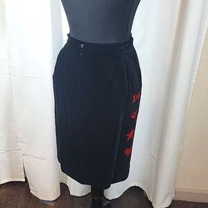ESCADA by Magaretha Ley Vintage Black Velvet Pencil Skirt with Red detail on each Side