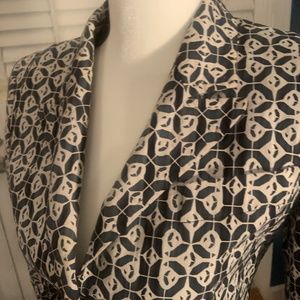 Tailored to body fit Black and white pattern---more of an off-white