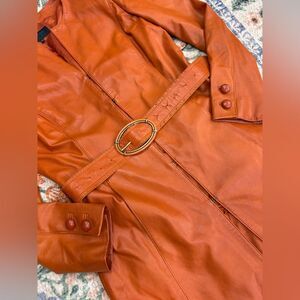 ESCADA SPORT DESIGNER LUXURY LAMBSKIN LEATHER VTG Longline Trench Coat Jacket 40