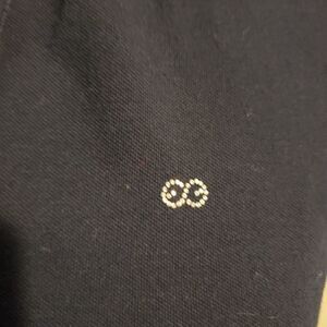 It is made from a lightweight and breathable navy blue cotton fabric, adorned with a beautiful rhinestone logo for an added touch of glamour.