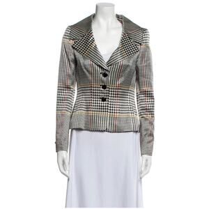 • 100% Silk - Red liner • 3 front glass buttons , single buttons on cuffs Dry Clean Only ,Black,Houndstooth Print,Pointed Collar