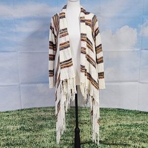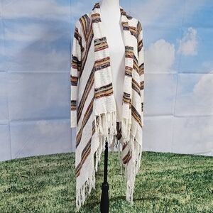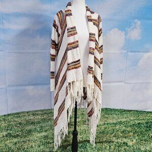 ESCIO | WATERFALL FRONT, FRINGE BOTTOM STRIPED LIGHTWEIGHT CARDIGAN
