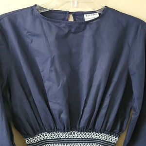 NWT ESCVDO navy blue mini dress with smocking at the waist and sleeve cuffs. Has keyhole back