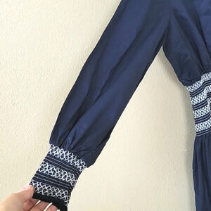 ESCVDO Santos Navy Blue Smocked Dress - Size Small