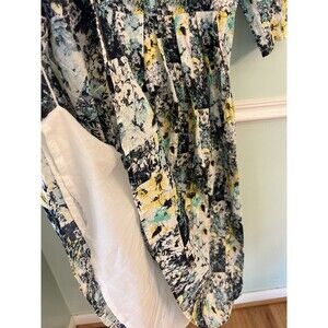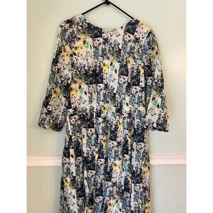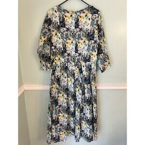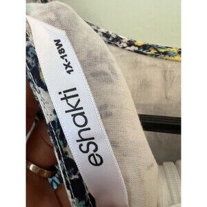 ESHAKTI 1X 18 Midi Geometric Dress Long Sleeve Pleated Cotton Blue Yellow High