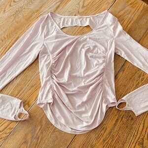 size S, (not sure if this is mens, womens or unisex so please just go by measurements to be certain of fit. very nice condition. all wool. pit to pit-18" Length from back neck seam=22" 18" pit to end of sleeve. Slate blue color with specs of colors and white blue design