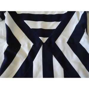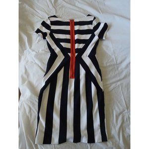 ESLEY Women's White Navy Orange Striped Knit Fitted Dress Back Zipper Sz Small