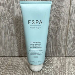 ESPA Natural Beauty Inner Calm Exfoliating Body Polish in 3.3 fl oz size. New sealed container. A cooling and revitalizing body scrub to refine, smooth, and refresh skin while helping to boost hydration. Apricot seed kernels gently sweep away dry, dull skin, spearmint cools, and refreshes while aloe vera hydrates and conditions. Please see photos for details. Item may show difference in color based upon photography and perception. Photos are part of the description, as everyone’s level of condition may vary. From smoke free and pet free home. All packages are shipped the same or next business day.