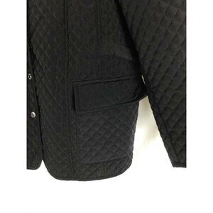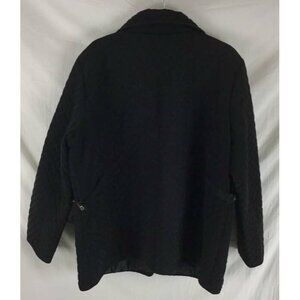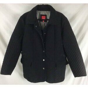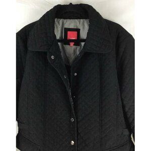 A women's plus size jacket from ESPIRIT OUTERWEAR. The jacket is in solid black, lined, quilted, collar, button down with snaps, pocket and is in excellent pre-owned condition.
