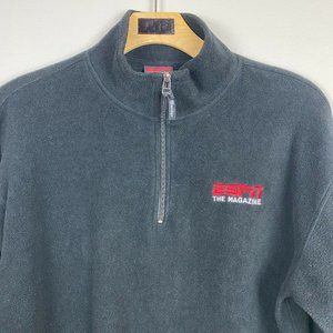 ESPN The Magazine Fleece Pullover Jacket XL Mens Black 1/4 Zip Mock Neck Cozy