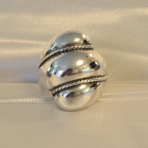Crafted from high-quality silver, this ring showcases a twisted rope design that exudes elegance and sophistication. The polished finish enhances its shine, making it a standout piece for any occasion. Its substantial width and intricate detailing make it a timeless addition to any jewelry collection.