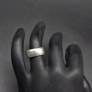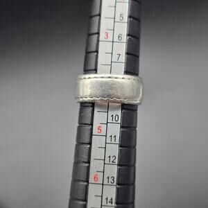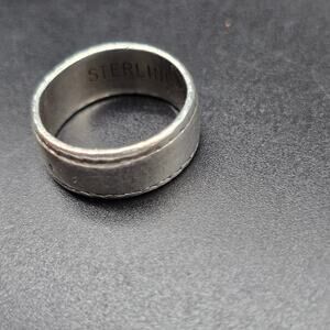 This sterling silver band ring fits a size 4 and is marked ESPO Sterling