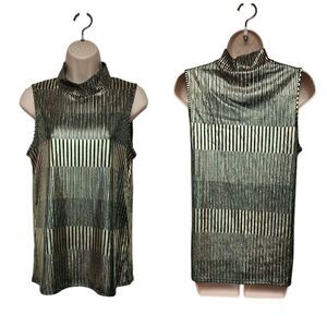 ESPRESSO LA Metallic Sleeveless Stand-Up Collar Tunic Top Gold & Green Size M