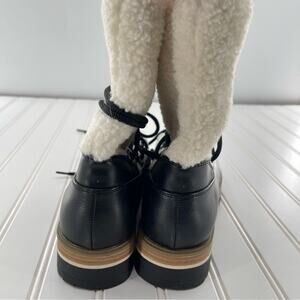ESPRIT Elaine Black Faux Fur Platform Preppy Lace Up Strappy Boots Size 8.5