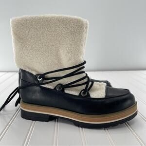 ESPRIT Elaine Black Faux Fur Platform Preppy Lace Up Strappy Boots Size 8.5