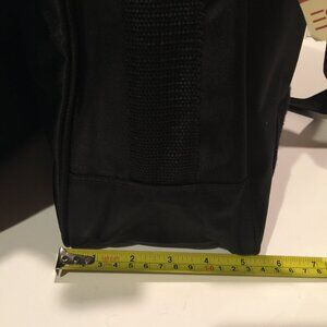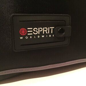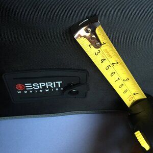 The retro ESPRIT VINTAGE Messenger Crossbody Bag in black with gray binding is a stylish and versatile accessory for both men and women. This is perfect for work or school, commute or even an overnight bag! This bag has plenty of pockets, inside pocket has a zipper, 3 pockets at the front and another back pocket for a tablet or iPad. This medium-sized bag features a solid black exterior made of durable nylon material, with a black lining and black woven with white stripe handle/strap. There are 2 ID windows. The adjustable strap with reflective 3M woven in, velcro closure and made of durable poly material has a maximum length of 46 inches. The vintage design adds a classic touch to the overall look, making it a perfect choice for everyday use. The crossbody style offers hands-free convenience, while the practical dimensions of 12 inches in width, 11 inches in height, and 5 inches in depth provide ample space for storing essentials. The item has crease at the front right of the Esprit logo as shown in the photos.