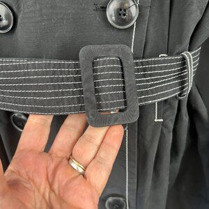 ESPRIT Womens Y2K Black Double Breasted Black Trench Coat Size L