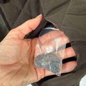 Beautiful quilted vintage green barn jacket from ESPRIT featuring a removable hood and black corduroy piping details. Including original extra buttons.