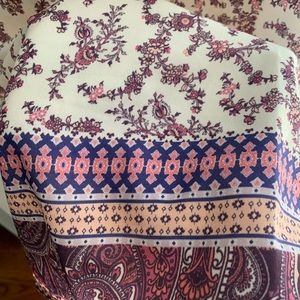 Esprit top size L (runs small) front fabric is a silky texture. The back fabric is cotton.