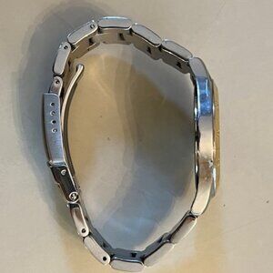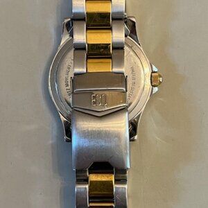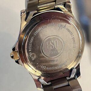 ESQ BY MOVADO Two-tone stainless steel men's wrist watch E5101 with Date. Great condition. NEW Battery! Sporty yet Classic. Swiss Quartz movement. Fits 7" wrist and has 3 more 'notches' to expand, see photo. Smoke free home. Offers Welcome!