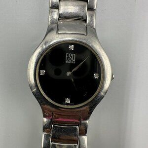ESQ Swiss Watch Men Silver Tone Black Dial 36MM Round Broken Clasp New Battery
