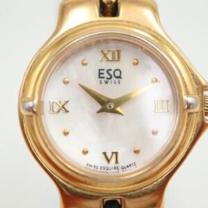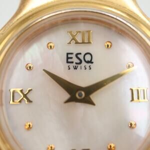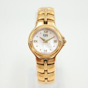 ESQ Swiss Womens Watch Gold Tone 24mm MOP Dial Steel Bracelet with New Battery