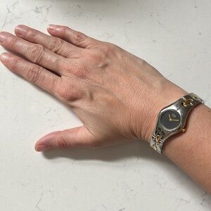Condition: Preowned with obvious signs of wear including significant scratches on the band interior. Please see photographs for more information. Needs battery replacement.