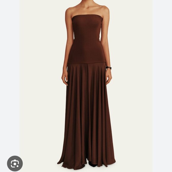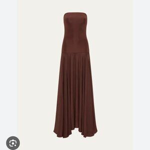 ESSE STUDIOS Illi strap-less drop waist silk dress, size UK 6, US 2, in color java (brown). A stunning dress that I intended to wear for special occasions but I never got around to wearing out. I hope it finds a home with someone who can take her out on the town :) The silk skirt feels so luxurious and falls beautifully.