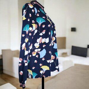 Very rare to find, Essential Antwerp Blouse. Floral long sleeve pullover. Mock collar with a ribbed striped navy and pink.